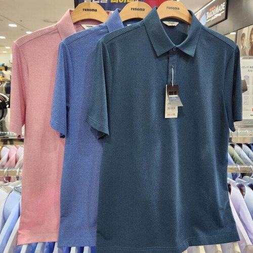 갤러리아_(레노마셔츠) 세련된 느낌의 카라넥 조직 니트 반팔티 RMUSW1002