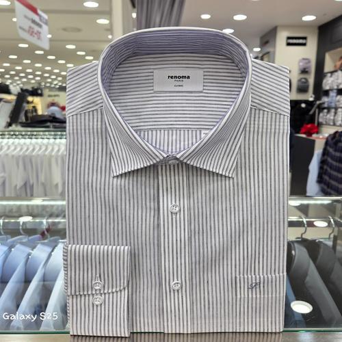 [레노마셔츠]일반핏/린넨 혼방 더블 스트라이프/긴소매 셔츠 RQSSG1450 NY_US