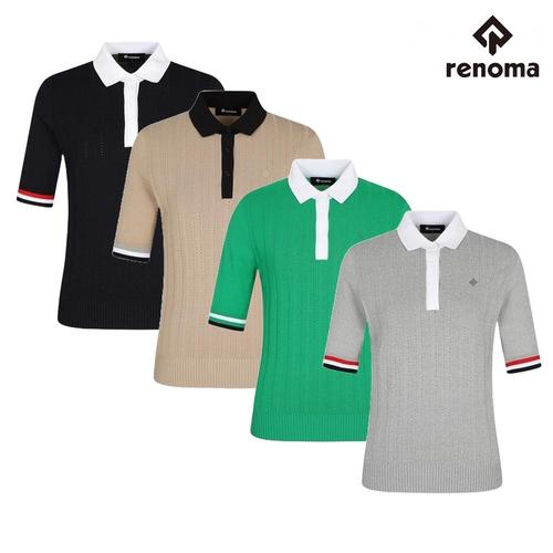 레노마 골프 여성 카라 소매 배색 스카시 반팔 니트 SPO/6281
