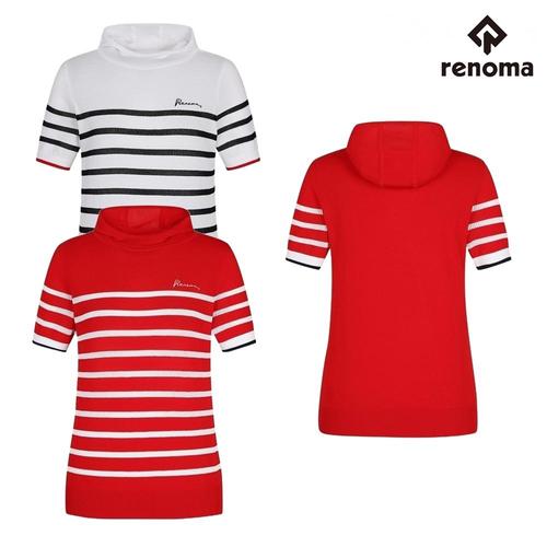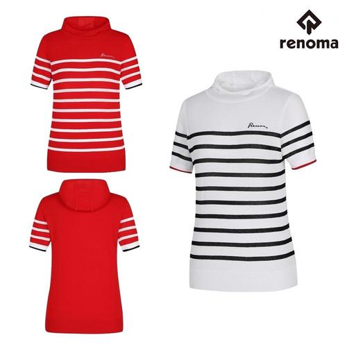 레노마 골프 여자 메쉬 짜임 스트라이프 후드 반팔 니트 RWSRO.6203