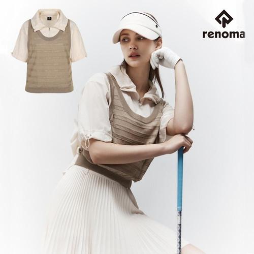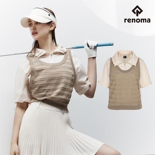 레노마 골프 여성 여름 캐주얼 니트 레이어드 반집업 반팔 점퍼 JUO/6302