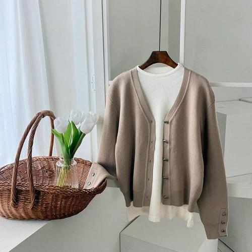 밀스튜디오 세이브존04 레이온 혼방 브이넥 앞단추 니트가디건 LPACDA109