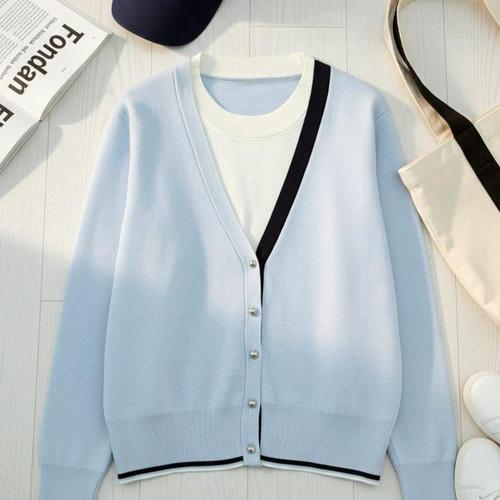 [미라클세븐]여성 여유핏 레이온 혼합 배색 V넥 니트 가디건