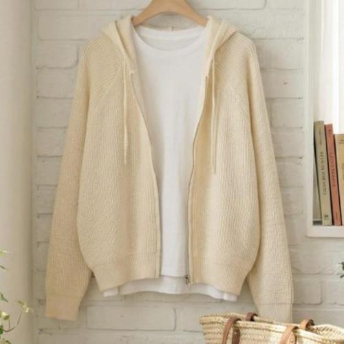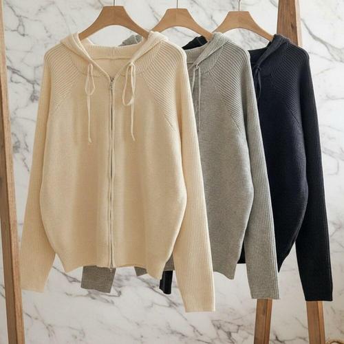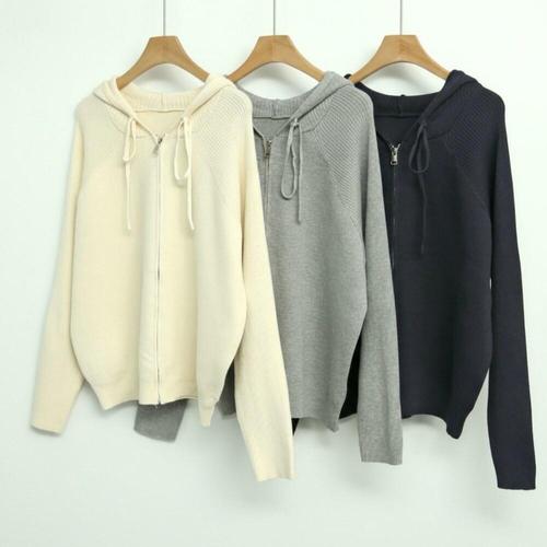 [옷자락]여성 레이온혼방 루즈핏 후드 가디건 집업 니트