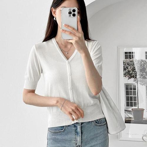 [다잇템]여자 레이온 얇은 V넥 부드러운 SS 버튼 가디건 (10318200A)