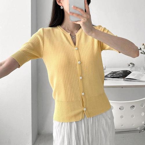[다잇템]여자 골지 반소매 진주단추 레이온 가디건 (10318182A)
