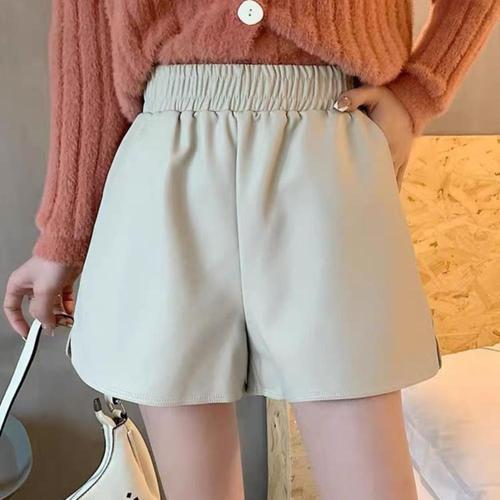[옷자락]여자 힙무드 레더 가죽 하이웨스트 밴딩 숏 팬츠