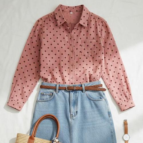 [넬리]레드벨벳 도트 포켓 셔츠_ND1BL021