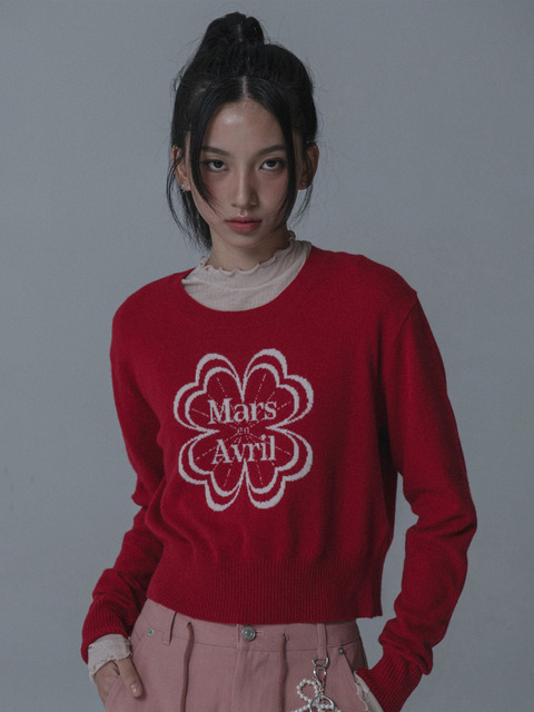 [마스 언 에브릴] 클로버 자가드 니트_레드
