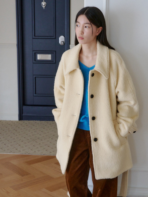 [비코멜리] 노아 울 하프 코트_레몬버터