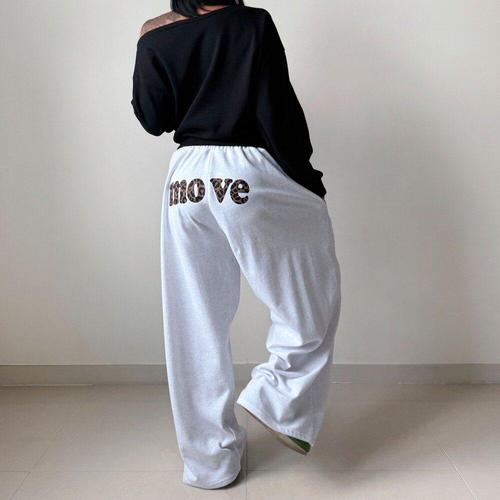 [옷자락] 여자 백프린팅 레오파드 봄츄리닝 휘뚜루 와이드 바지