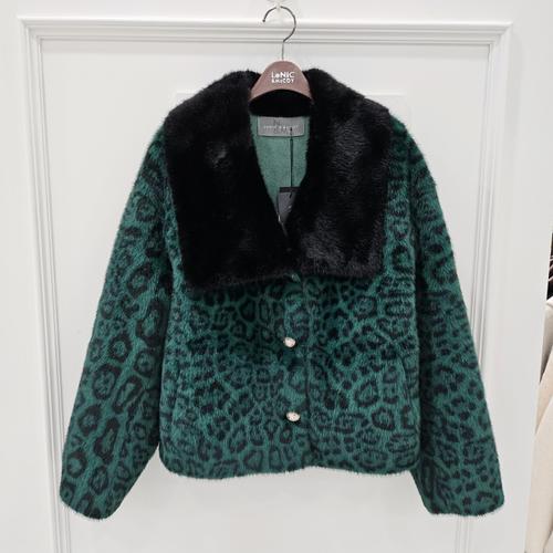 [르니앤맥코이]르니앤맥코이 빅퍼카라 레오파드 퍼숏자켓 MM12MJ772_GN