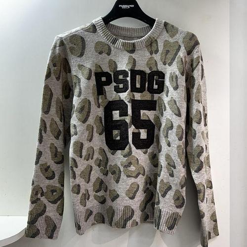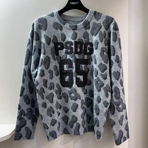 [파사디골프]레오파드 프린트 울혼방 라운드 니트 블루 남성 Q24WKP267M