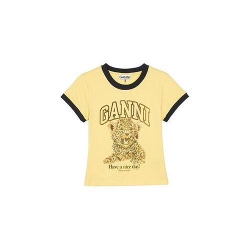 [가니]25FW 가니 베이직 저지 레오파드 티셔츠 옐로우 T4256 372 STK
