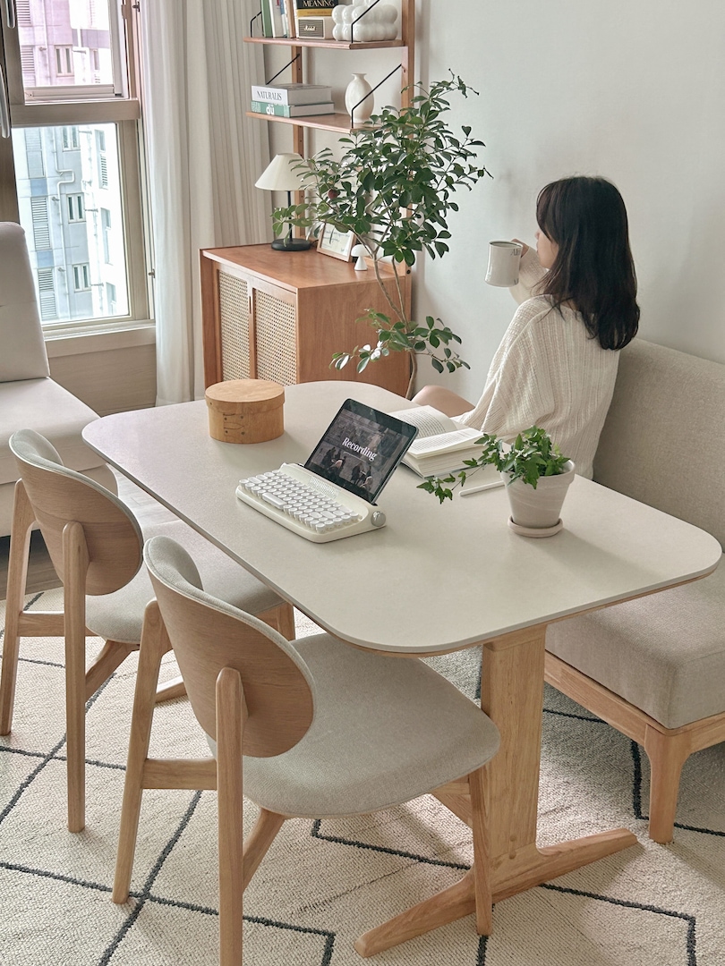 스칸딕 패밀리 라운딩 낮은 원목식탁 세트 와이드형 4인용 (의자4)