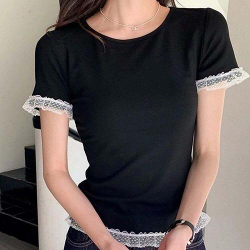 [오너클랜]인기상품 레이스 장식 슬림핏 반팔 티셔츠 레이어드 스타일 [WFLKR4T_260303]
