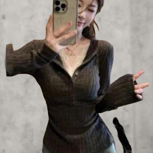 [브이와이][VY] 여자 프릴 슬림핏 웨이브 롱슬리브 골지 스웨터 모크넥 티셔츠_14613255_588847