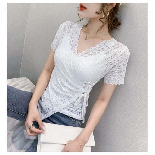[오너클랜]인기상품 여성용 레이스 브이넥 코르셋 슬림핏 반팔 티셔츠 여름용 [WFLINLJ_260301]