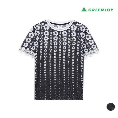 [그린조이]여성 레이스 라운드 반팔 티셔츠