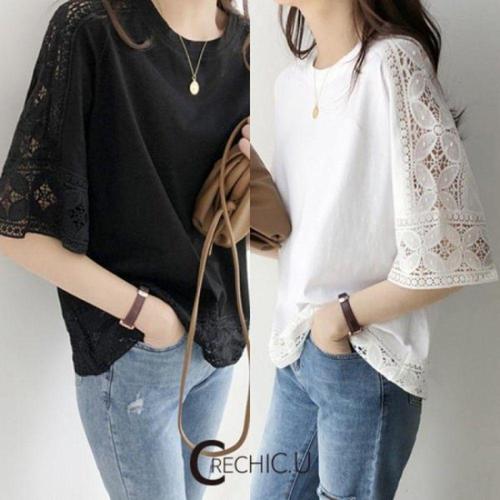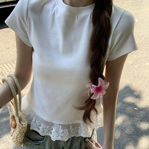 [오너클랜]인기상품 레이스 장식 라운드넥 반팔 티셔츠 여름용 [WFLIMZR_260301]