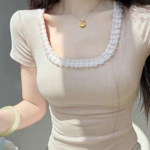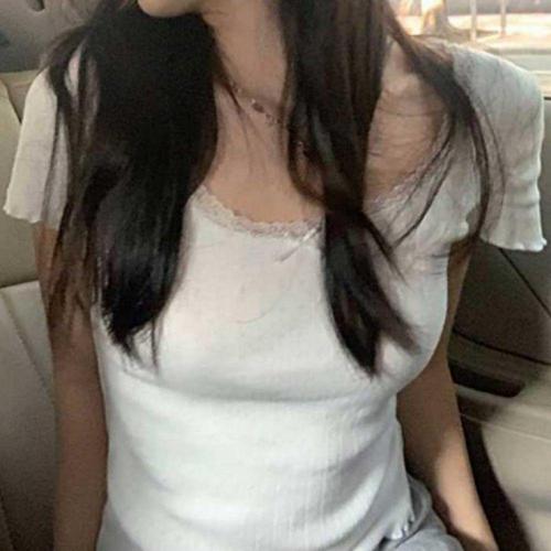 [오너클랜]인기상품 여성 레이스 스퀘어넥 크롭 반팔 티셔츠 [WFLKSG1_260303]