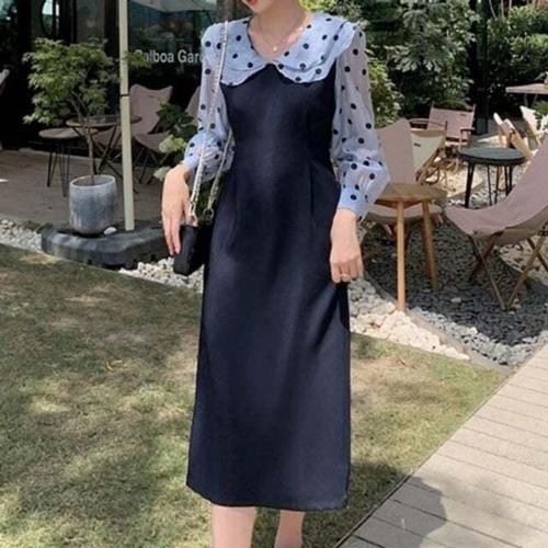 TEMU 유럽&미국 가을 겨울 신상 솔리드 컬러 V넥 긴팔 여성 다용도 드레스|가을원피스