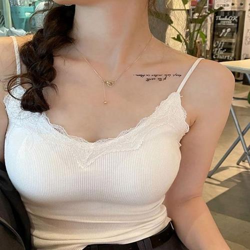 레이스 여성 캡나시 더블 스트랩 캐미솔 브라 끈나시 슬립 웨어