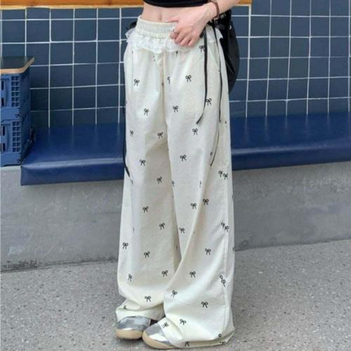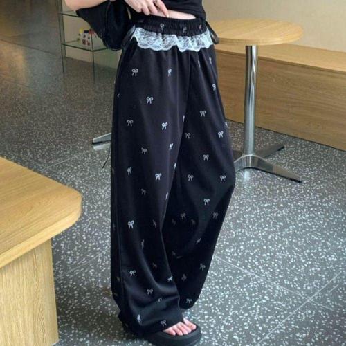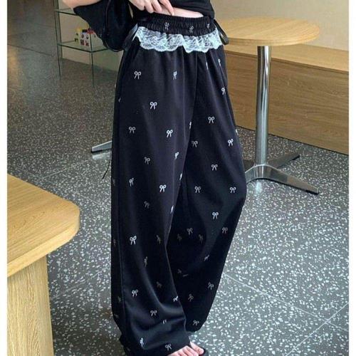 [오너클랜]인기상품 와이드핏 하이웨스트 여성 밴딩 팬츠 레이스 리본 포인트 패턴 바지 [WFLIOMH_260301]