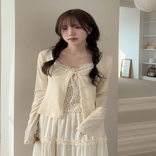 [엘루이즈][엘루이즈] [청순여리] 루니아 잔꽃 레이스 트리밍 실리본 나시 가디건 세트(4color)