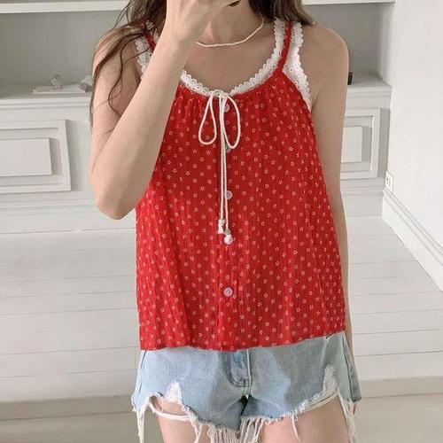 [다잇템]여성 코디 꽃무늬 레이스 귀여운 나시티