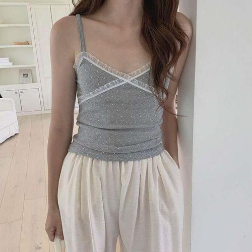 레이스 끈나시 와이드 데일리 레이어드 민소매 나시티