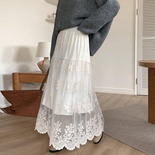 |KHK1551|여성용 꽃 자수 레이스 A라인 롱 스커트 타입