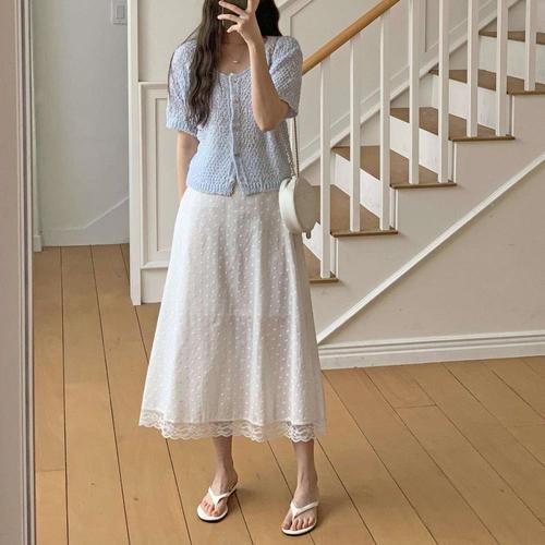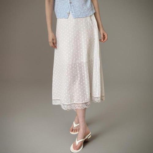 |KHK1551|여성 면 소재 꽃 자수 레이스 A라인 롱 스커트