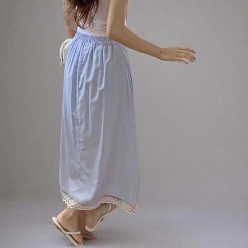 |KHK156F|여성 A라인 롱스커트 레이온 밴딩 밑단 레이스