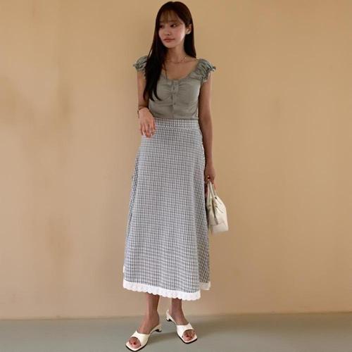 팝콘 프릴 레이스 밴딩 플레어 A라인 러블리 미디 롱 스커트 2color