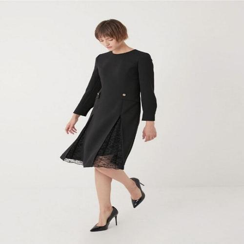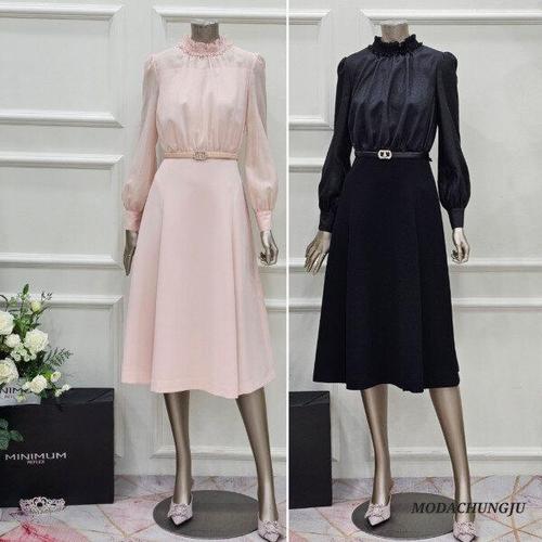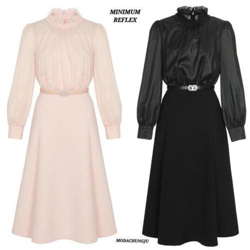 [미니멈]MXAAWO1119BK 레이스 배색 플레어 원피스_JK