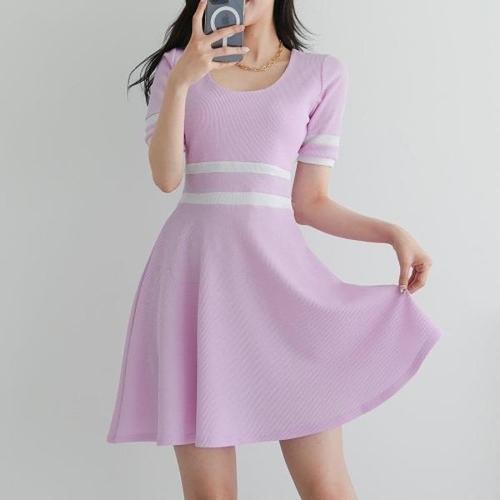 [신상오픈런]|KMO3729|들피라 배색 플레어 크루넥 미니 여성 디테일 원피스_18169830_597559