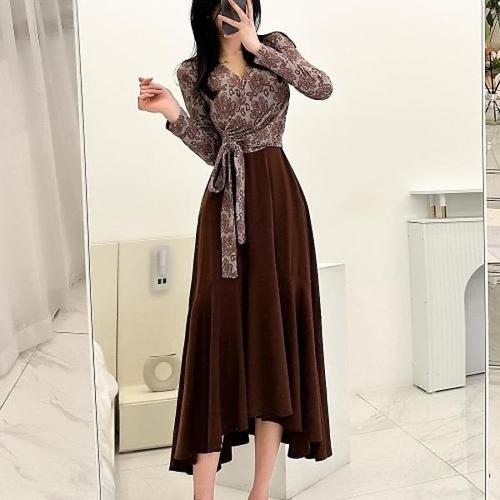 [신상오픈런]|KMO44F5|던메리 배색 간절기 긴원피스 여성 랩 플레어 여행_18169448_597559