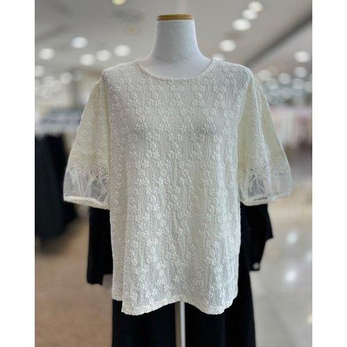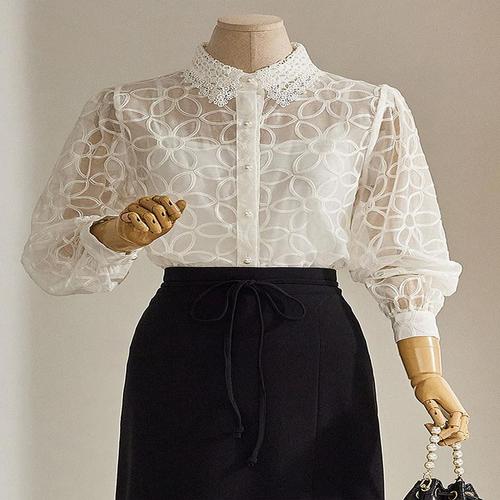 자수 레이스 시스루 블라우스 퍼프소매 여리핏 셔츠