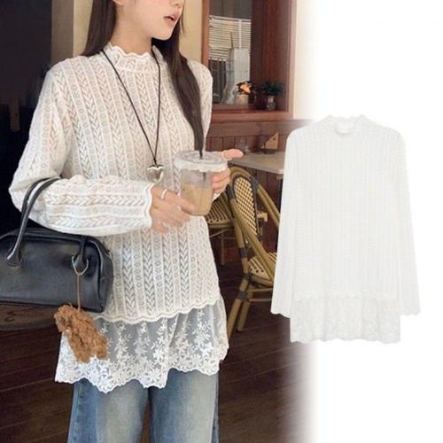 [옷자락]여자 러블리 시스루 레이스 데일리 블라우스