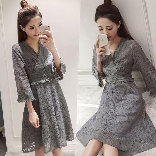 ASURE 여성 긴팔 레이스 원피스