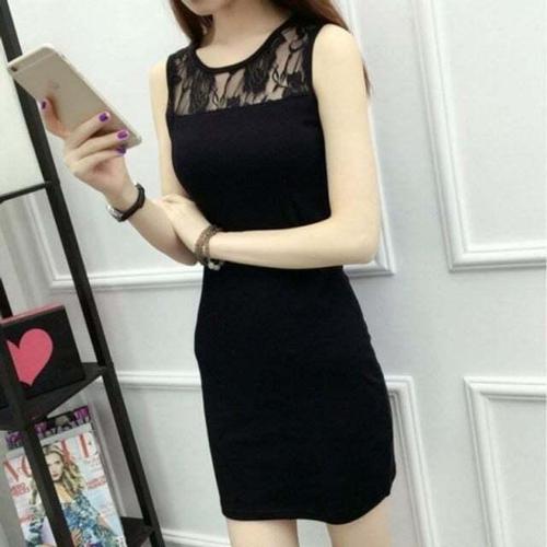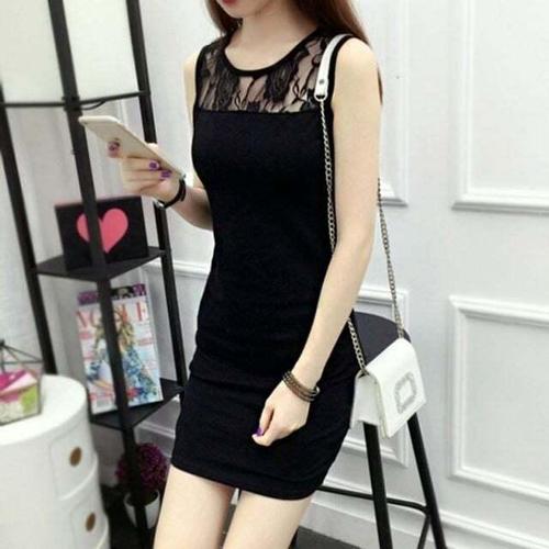 [옷자락] 여성용 레이스 시스루 블랙 미니 드레스