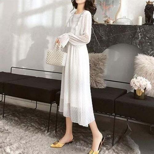 시스루 레이어드 원피스 롱 여성 뷔스티에 자수 레이스 셔링 프릴 스물