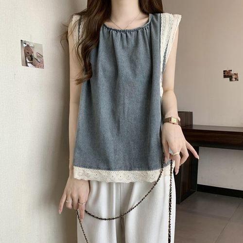 [랄라모션]레이스 스티치 데님 셔츠(LLM0055)