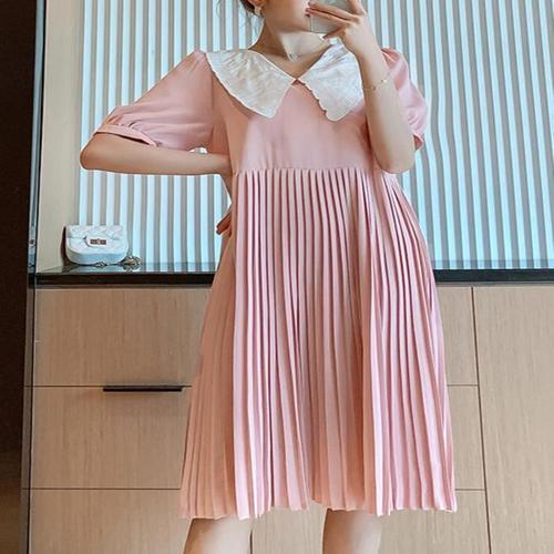 [다잇템]여자 플리츠 카라 SS 아코디언 반소매 원피스 (10419067A)