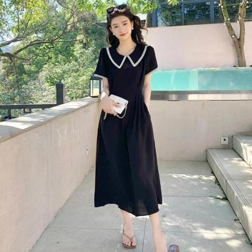 [다잇템]여자 카라 SS 검정 반소매 롱 레이스 원피스 (10616323A)