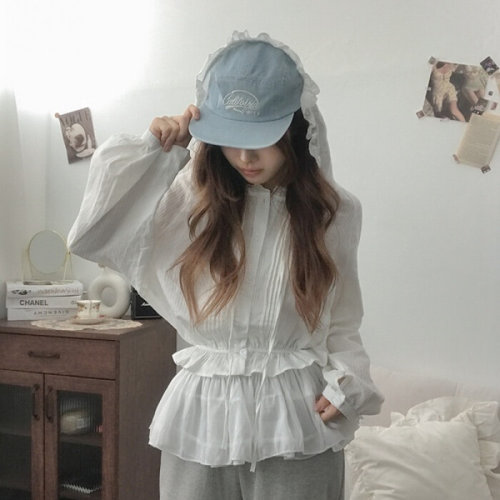 여성 청순 어깨 셔링 빅카라 화이트 셔츠 블라우스