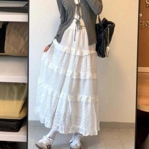[오너클랜]인기상품 여성용 화이트 플레어 레이스 롱 스커트 데일리 착용 [WFLL7TI_260304]