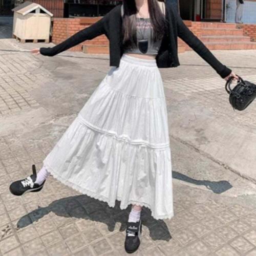 [신상오픈런]여성 일상 로맨틱 여름휴가 레이스 플레어 롱 치마