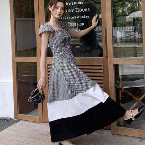 [오너클랜]인기상품 플레어 여성 체크 원피스 스모크 여자 밴딩 원피스 휴양지 나들이 [WFLJLJH_260302]